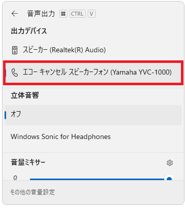 PCのローカルで設定した音声主力先の設定は、リモートデスクトップ画面にも反映されます。