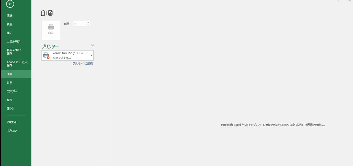 2020年10月21日 / 最終更新日時 : 2023年12月11日 miyashita プリンタ関連_O23 Excel,Wordなどのアプリから印刷ができません 「接続できません」とエラー表示される場合は、一度該当プリンターを削除して追加しなおしてください。 その後、事務システムからサインアウト、再度サインインをして印刷できるようになっているかお試しください。 エラー画面(画像) ・プリンターの削除・追加の方法